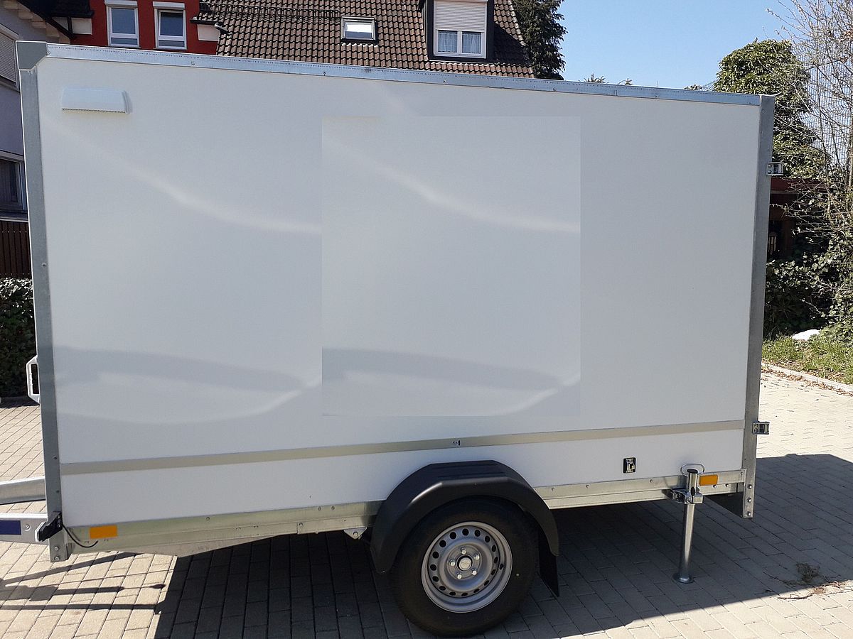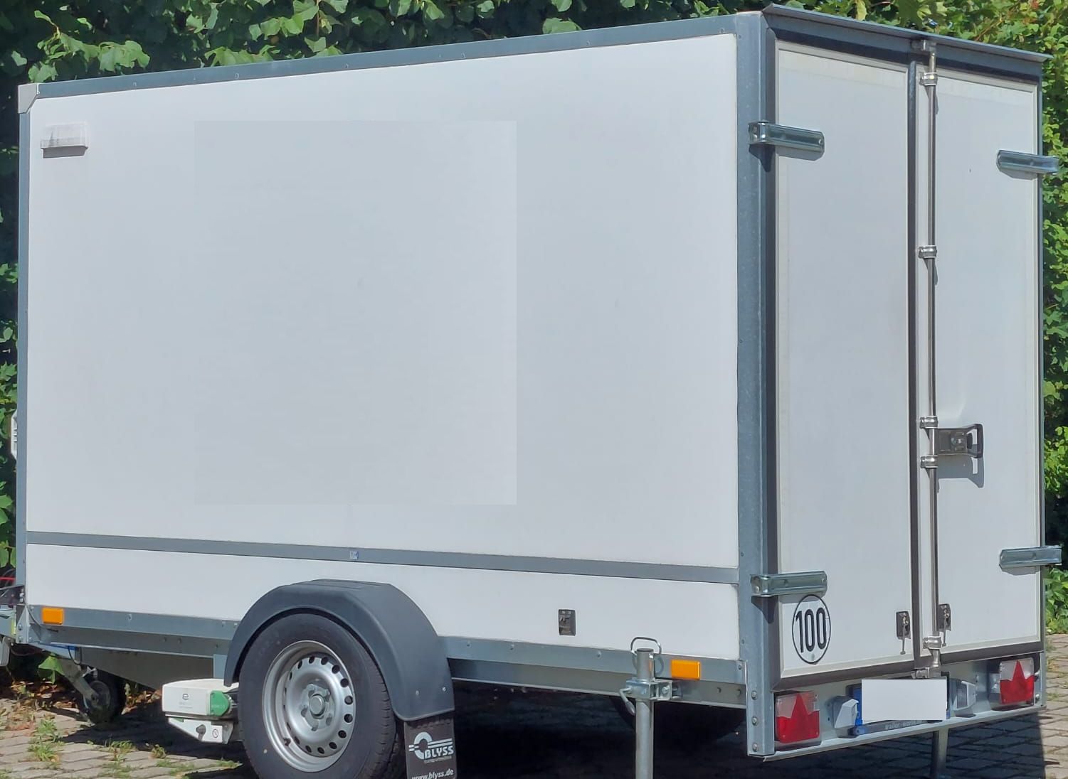 Unser Anhänger ist ein Blyss Kastenanhänger mit den Innenmaßen
