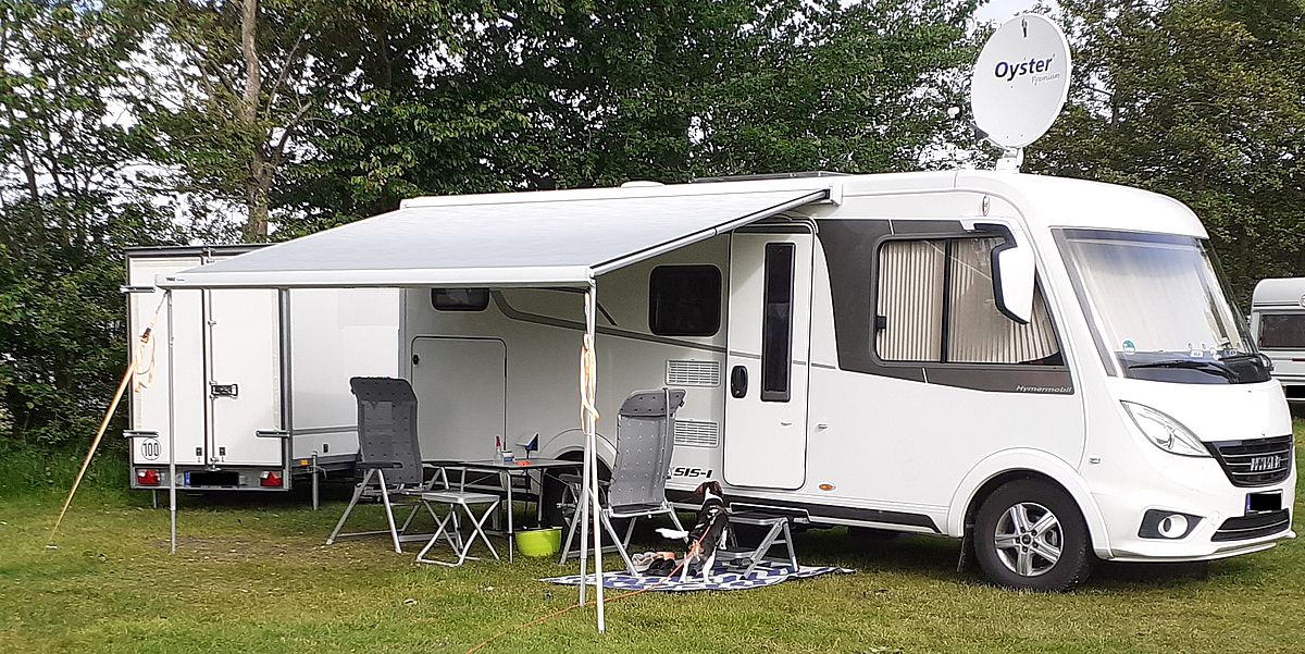 Wir hatten vorab gebucht und bekamen einen schönen großen Platz für unser WoMo und Anhänger und unsere motorisierten Zweiräder.