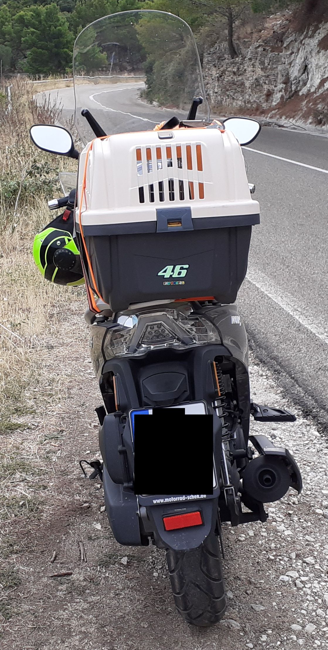 So fiel die Wahl auf einen Motorroller mit Frontscheibe.